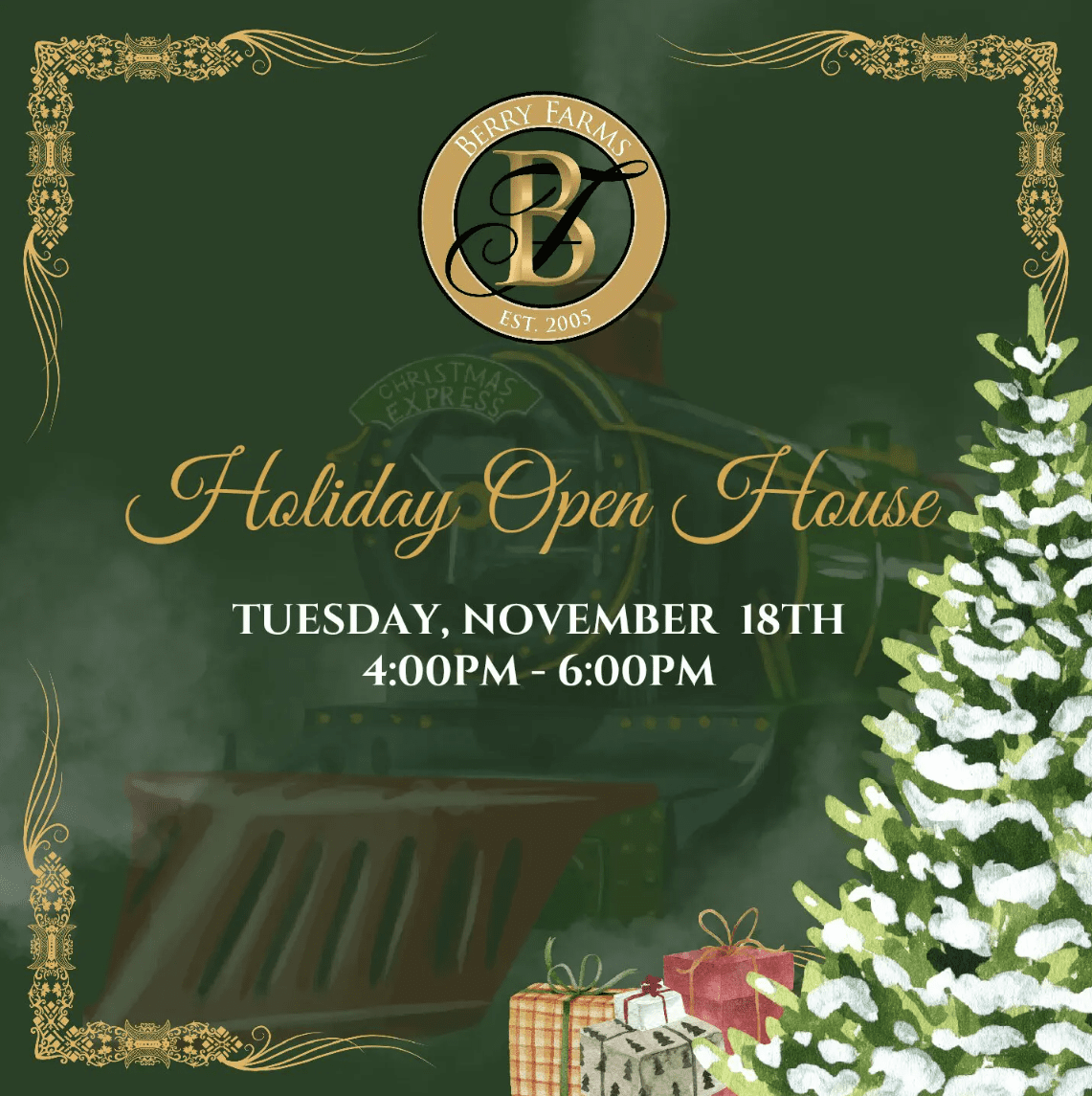’Tis the season to gather with loved ones, share in the joy of the holidays and create lasting memories. This year, we invite you to kick off the holiday season in festive style at our second annual Berry Farms Holiday Open House from 4–6 p.m. on Tuesday, Nov. 18!